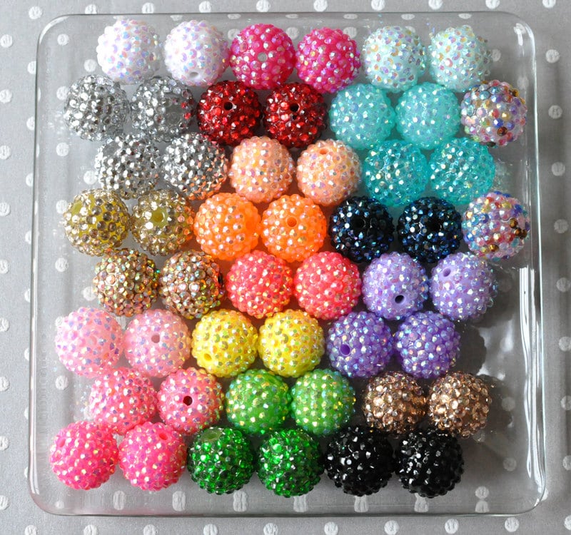 20mm rhinestone bubblegum bead wholesale mix. You will receive the exact mix of rhinestones shown in the photo.